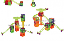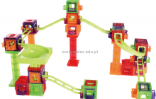 Zestaw magnetycznych klocków, z których można zbudować tor dla przezroczystej piłeczki.