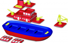 Zestaw zawiera 10 elementów, które tworzą łódkę o wymiarach 26 cm.