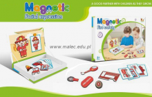 Wymiary opakowania: 26 x 19 x 4 cm. Zabawa polega na układaniu , na załączonej w opakowaniu tablicy magnetycznej -magnesów z wzorami, z których dziecko może tworzyć dowolne obrazy tematyczne.