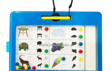 Za pomocą długopisu magnetycznego przyciągamy z wnętrza pudełka metalowe kulki, które tworzą na powierzchni wzory. Kulki nie wypadają.