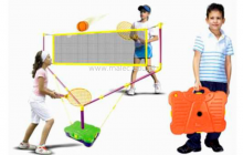 W skład zestawu wchodzą : 2 rakietki, piłka, siatka, elementy plastikowe zapakowane w walizkę, którą możemy zabrać w plener.