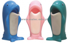Kolorowe kosze wykonane są z tworzywa sztucznego. Wewnątrz posiadają metalowy okrągły wkład na worek na śmieci. Mogą być zastosowane na zewnątrz, jak i wewnątrz przedszkola.