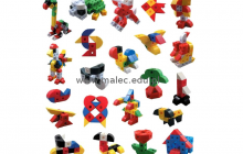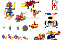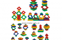 Znajdują się tu zestawy klocków plastikowych o ciekawych kształtach, kolorach i o różnej wielkości.