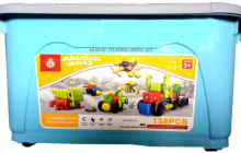 Zestaw 138 kolorowych klocków magnetycznych, z których możemy stworzyć najróżniejsze budowle.